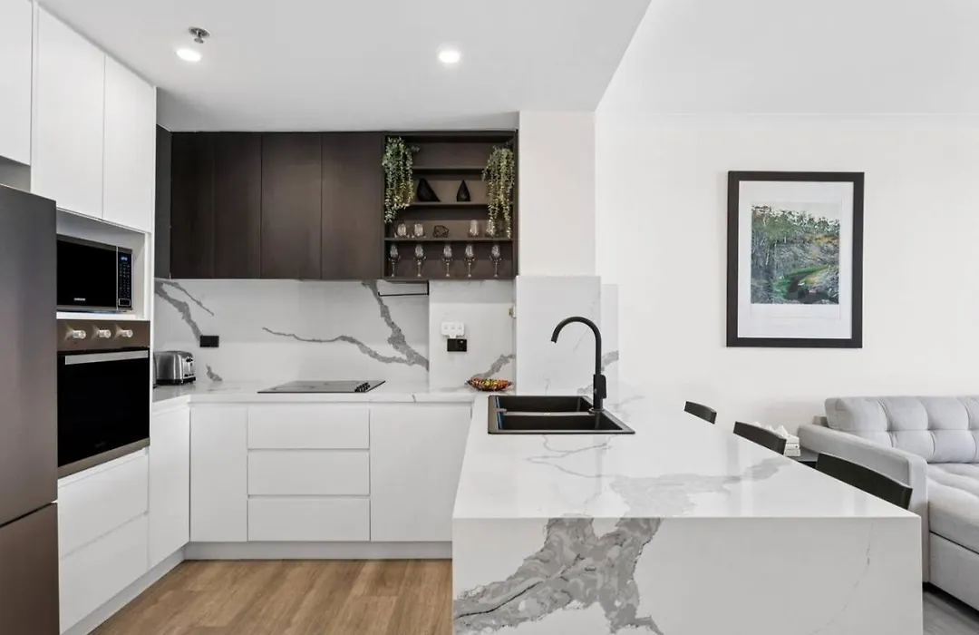 La cocina completa, equipada con un lavaplatos y un horno, ofrece a los huéspedes un entorno único para comer. Esta propiedad está cerca de la estación de trenes Town Hall. La inclusión de una bañera de hidromasaje y una sauna en el Apartamento Stylish 2Br Retreat In Heart Of Darling Harbour! garantiza una estancia más agradable.